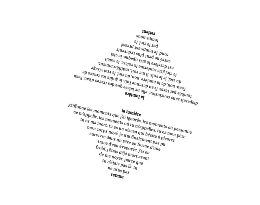 Les poèmes y dessinent une calligraphie moderne, héritière des avant-gardes mais résolument contemporaine. La phrase quitte la linéarité pour se fragmenter, se disperser en cercles, spirales, constellations.